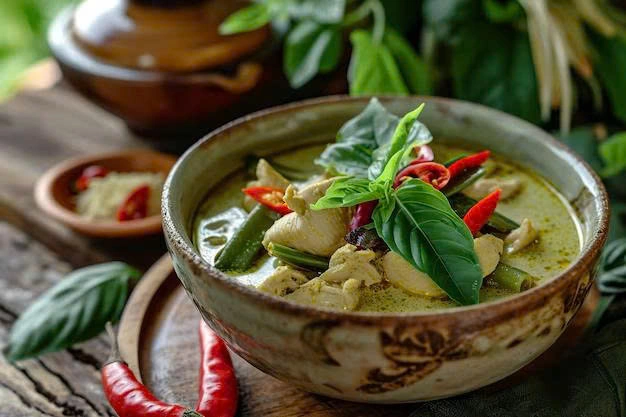 Green Curry, or Gaeng Keow Wan, is one of Thailand’s most beloved dishes, known for its rich, aromatic flavors and vibrant green color. Made with coconut milk, green curry paste, Thai eggplants, and fragrant herbs like basil, it often includes chicken, beef, or fish balls. The curry is mildly sweet yet spicy, offering a perfect balance of creaminess and heat, and is usually enjoyed with steamed rice or rice noodles. For travelers, Green Curry is a must-try dish that showcases the heart of Thai comfort food.